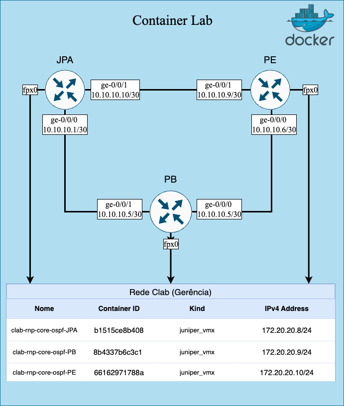 Este tópico deve listar os requisitos mínimos de hardware e software necessários para executar o laboratório. Certifique-se de incluir as ferramentas essenciais, como Containerlab e Docker, além da rede br-lab.